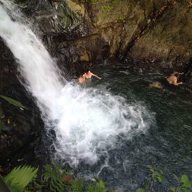Swim under waterfalls and in a geothermal lagoon in the jungle